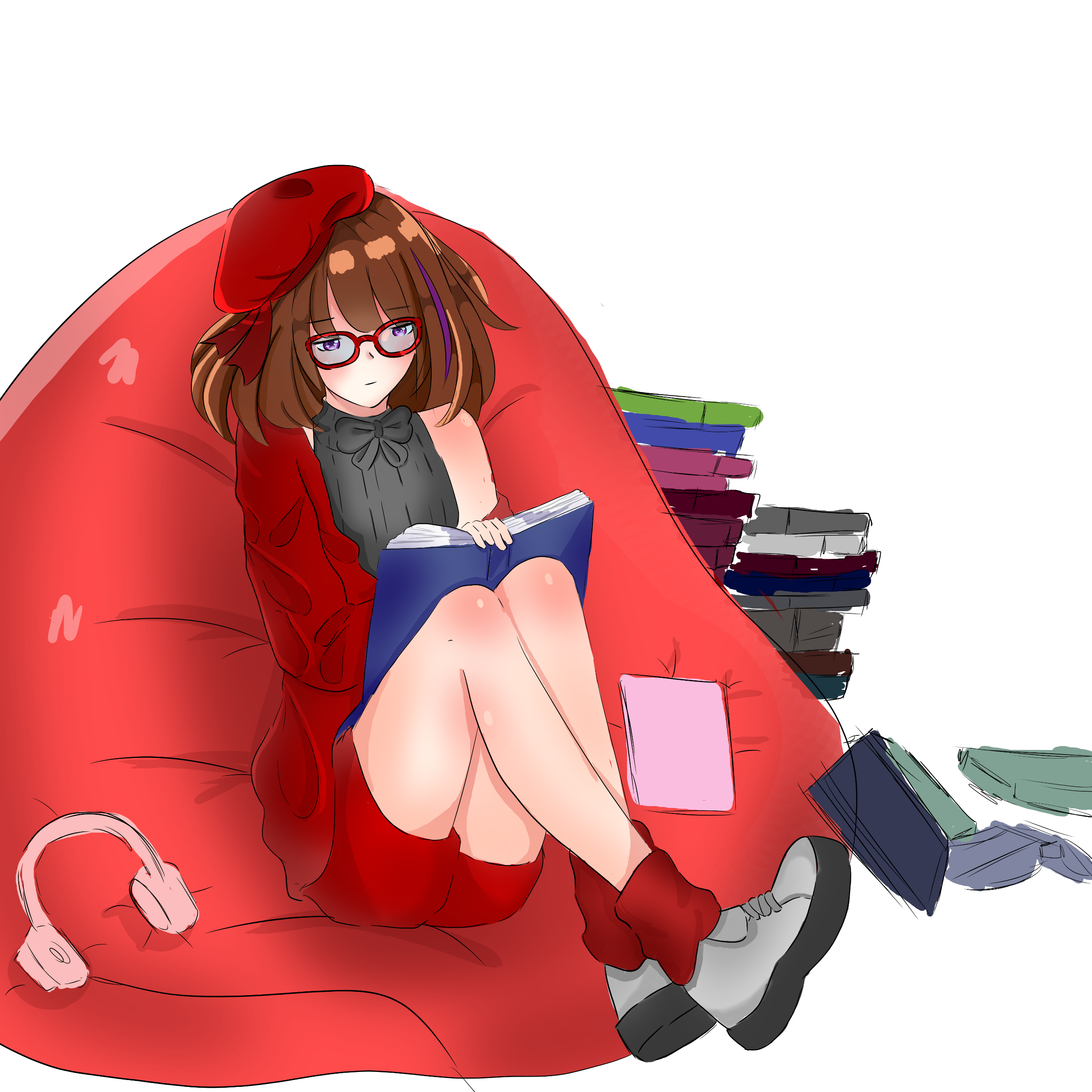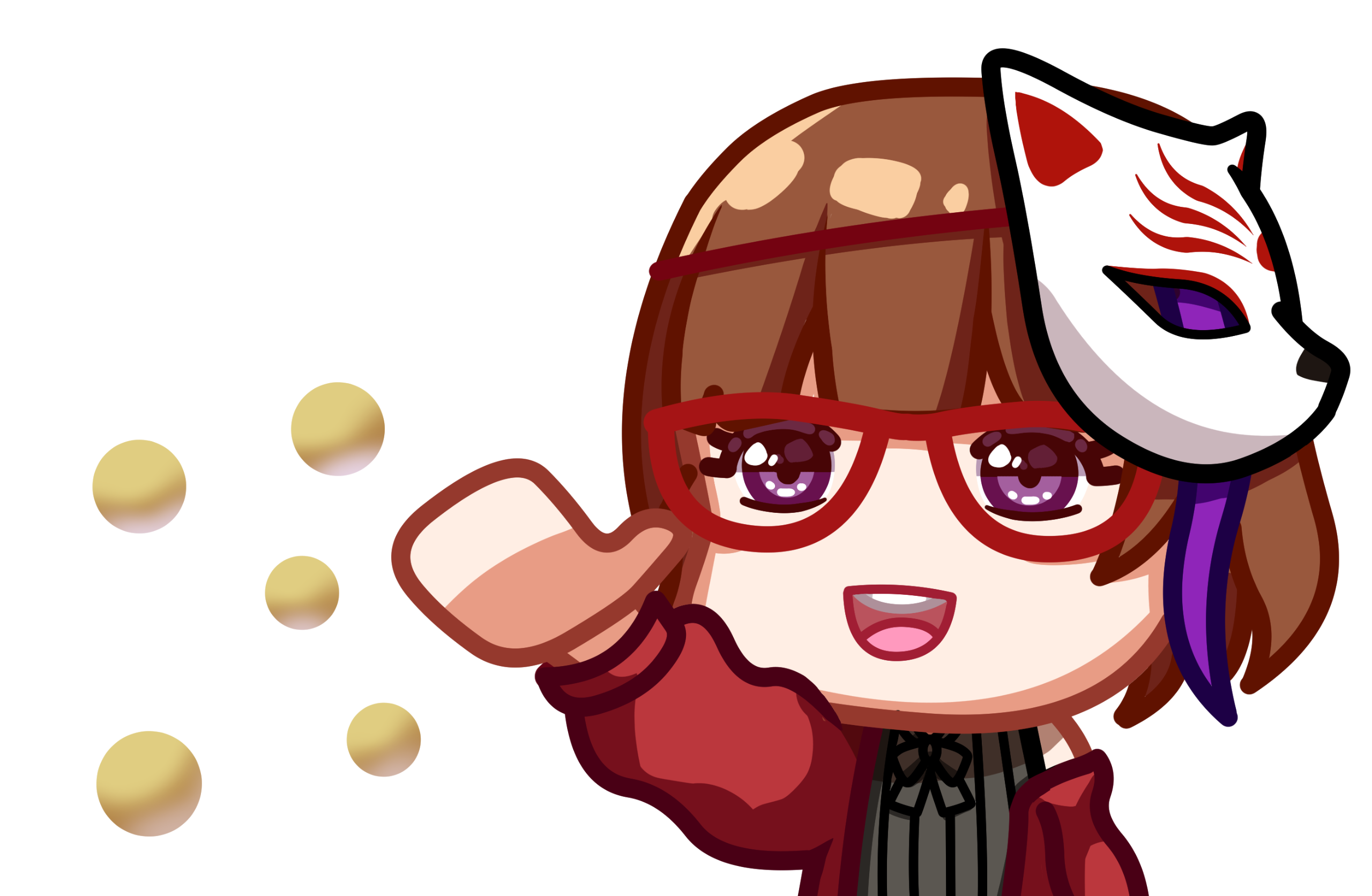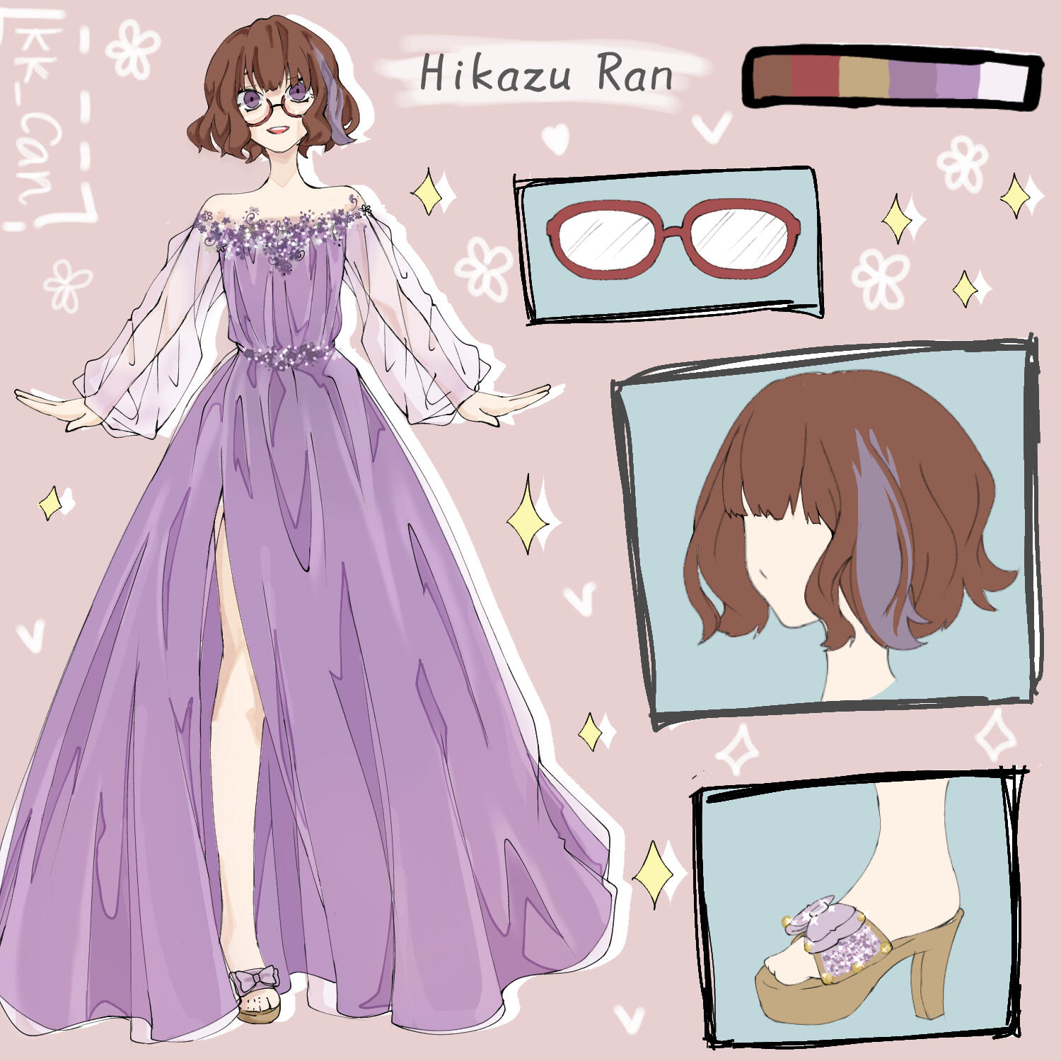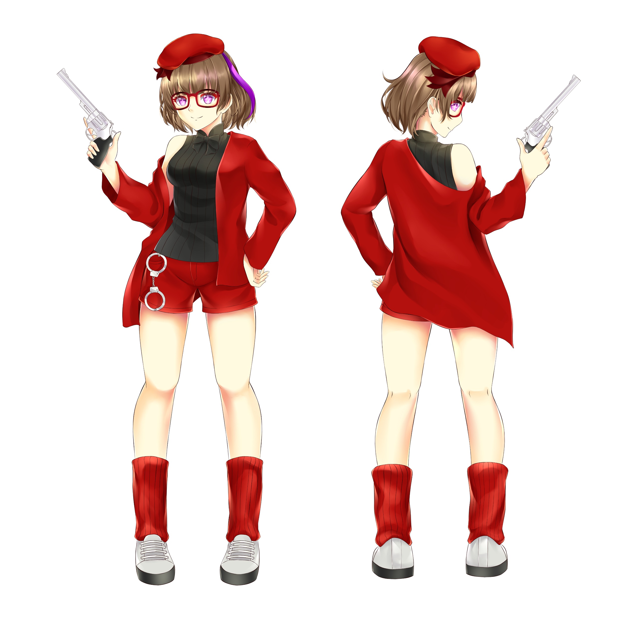 Ran have 2 initial design made from Charat, and a other design depends on the occasion. She also have some cross-over outfits and forms too.Her design is inspired by Kuriyama Mirai (Kyoukai no Kanata). I really like Mirai and I used the same red glasses and hairstyle for around 7 years, that's how I came up with the design.I prefer to keep Ran's design as is.