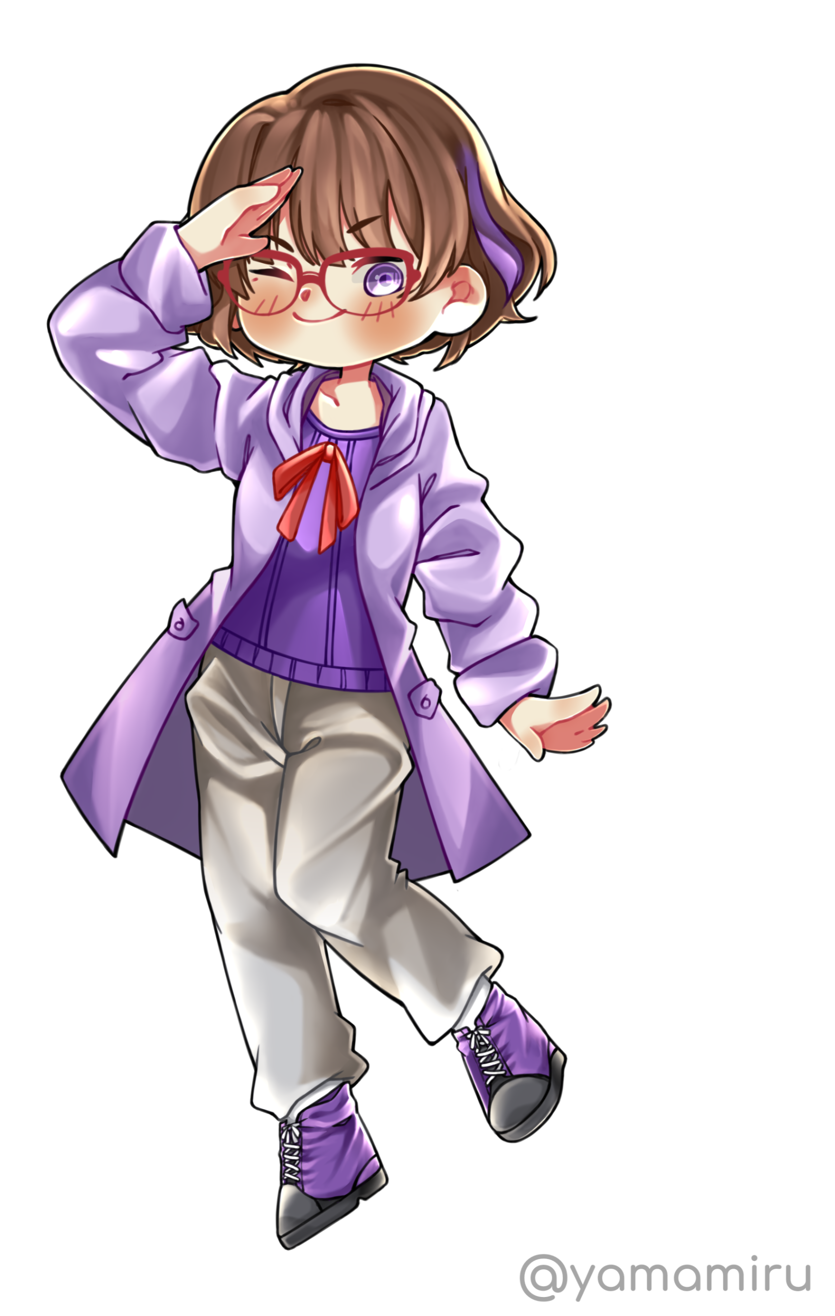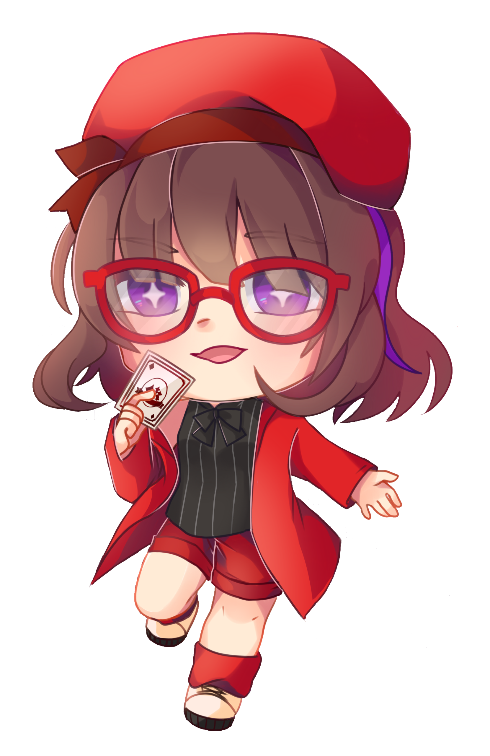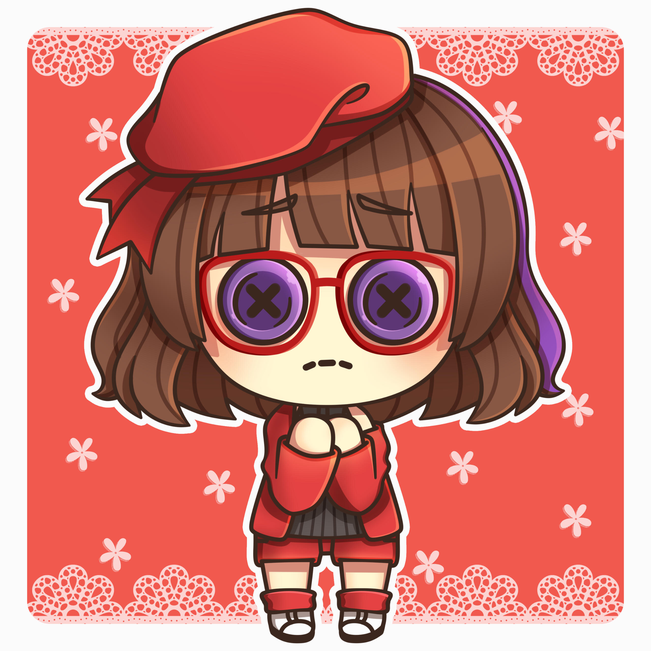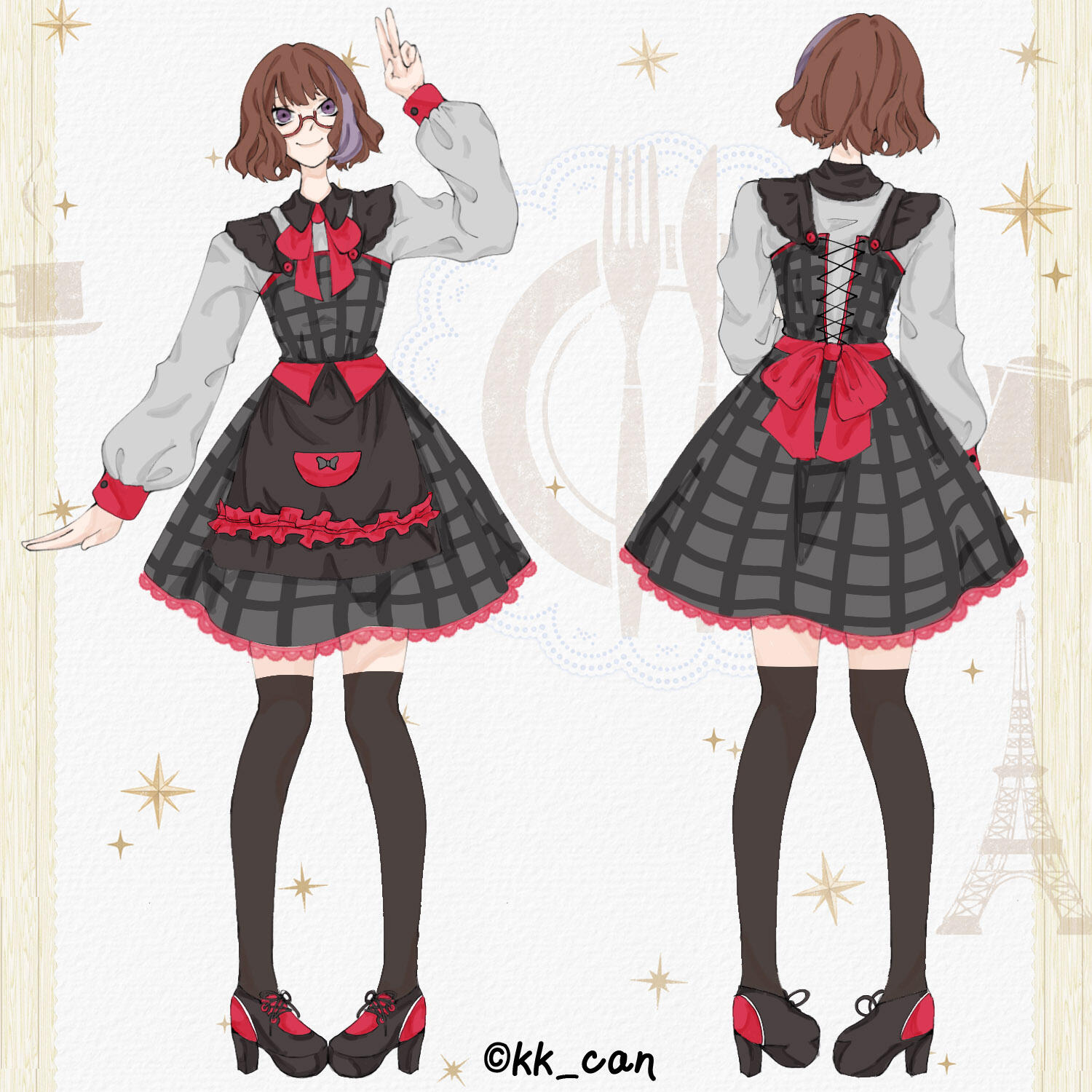 Ran have 2 initial design made from Charat, and a other design depends on the occasion. She also have some cross-over outfits and forms too.Her design is inspired by Kuriyama Mirai (Kyoukai no Kanata). I really like Mirai and I used the same red glasses and hairstyle for around 7 years, that's how I came up with the design.I prefer to keep Ran's design as is.