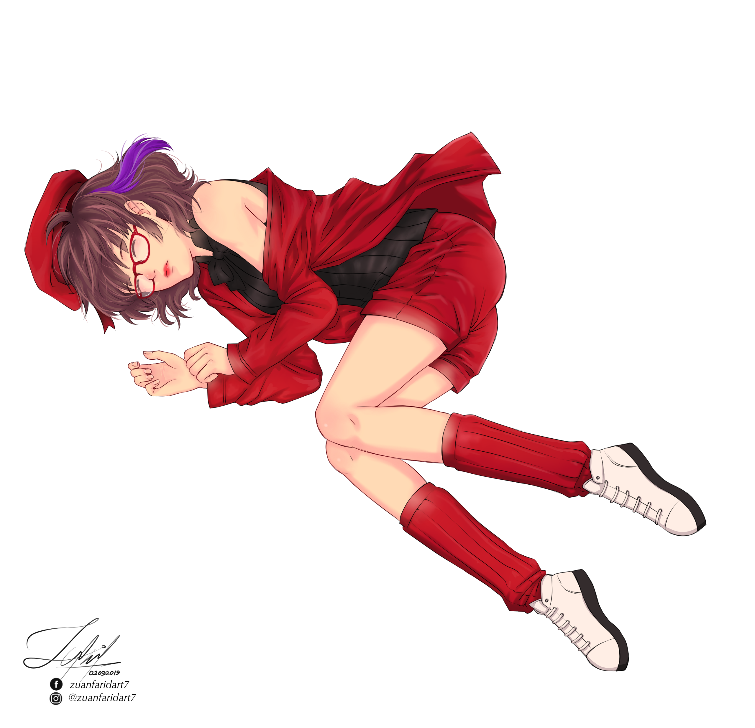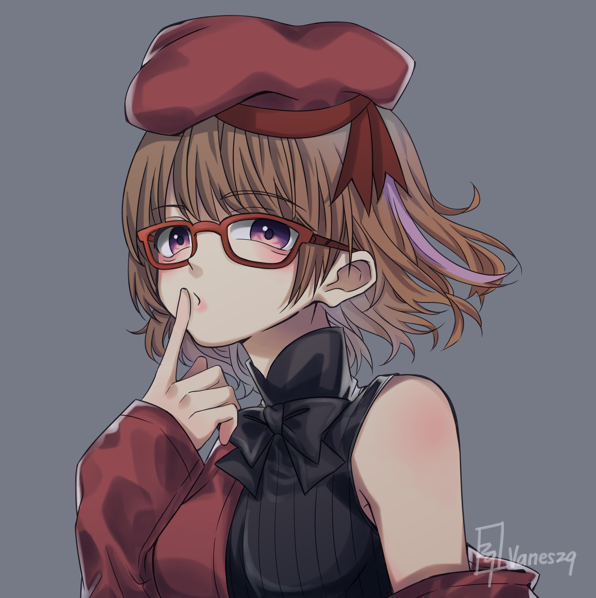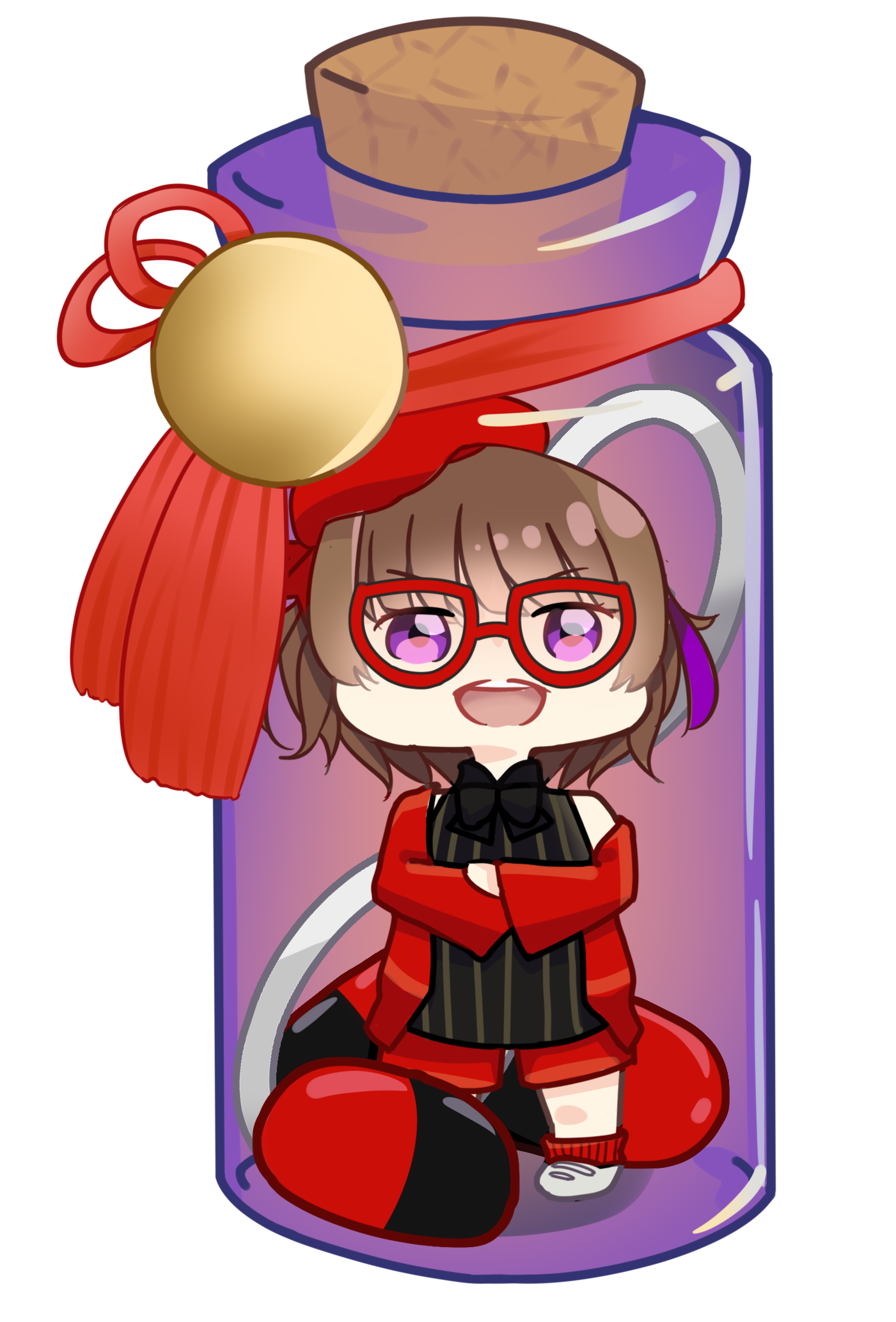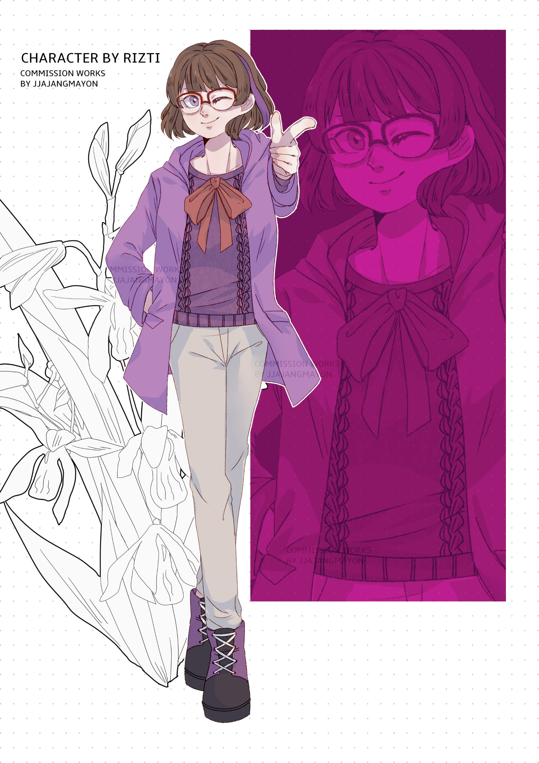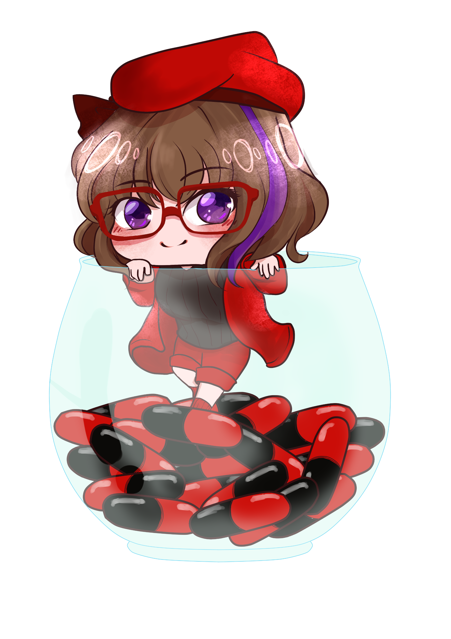 Ran have 2 initial design made from Charat, and a other design depends on the occasion. She also have some cross-over outfits and forms too.Her design is inspired by Kuriyama Mirai (Kyoukai no Kanata). I really like Mirai and I used the same red glasses and hairstyle for around 7 years, that's how I came up with the design.I prefer to keep Ran's design as is.