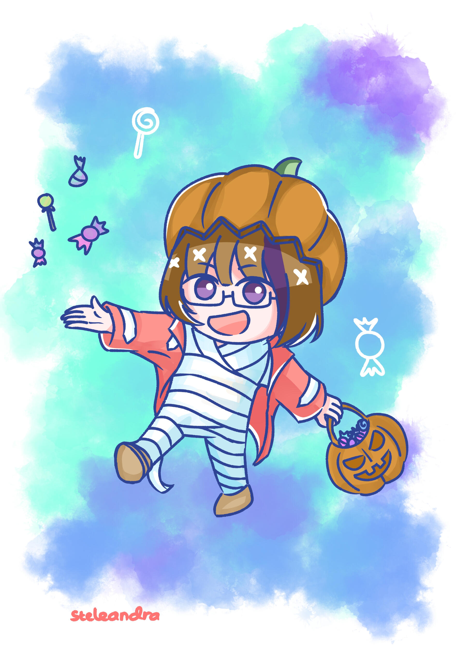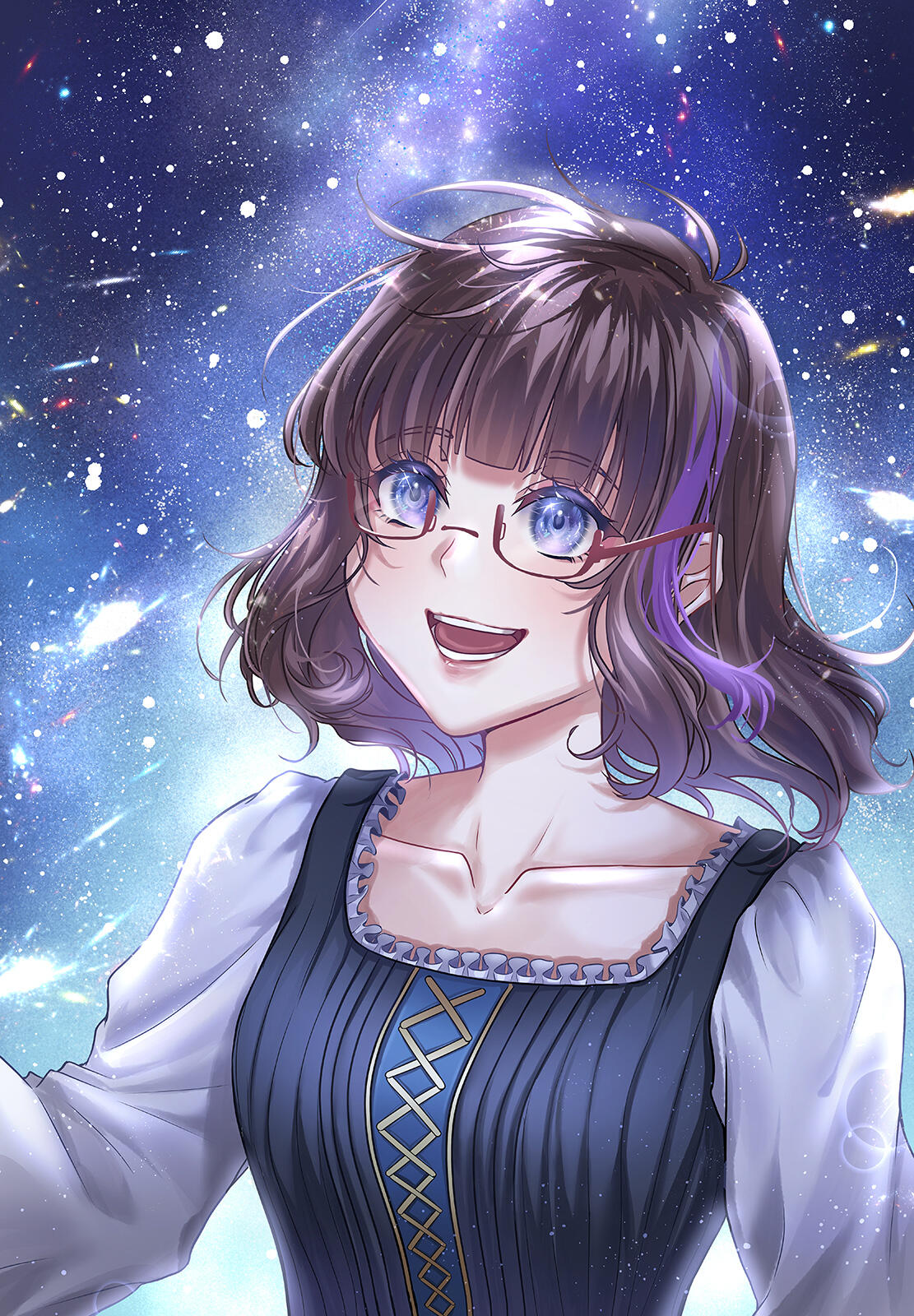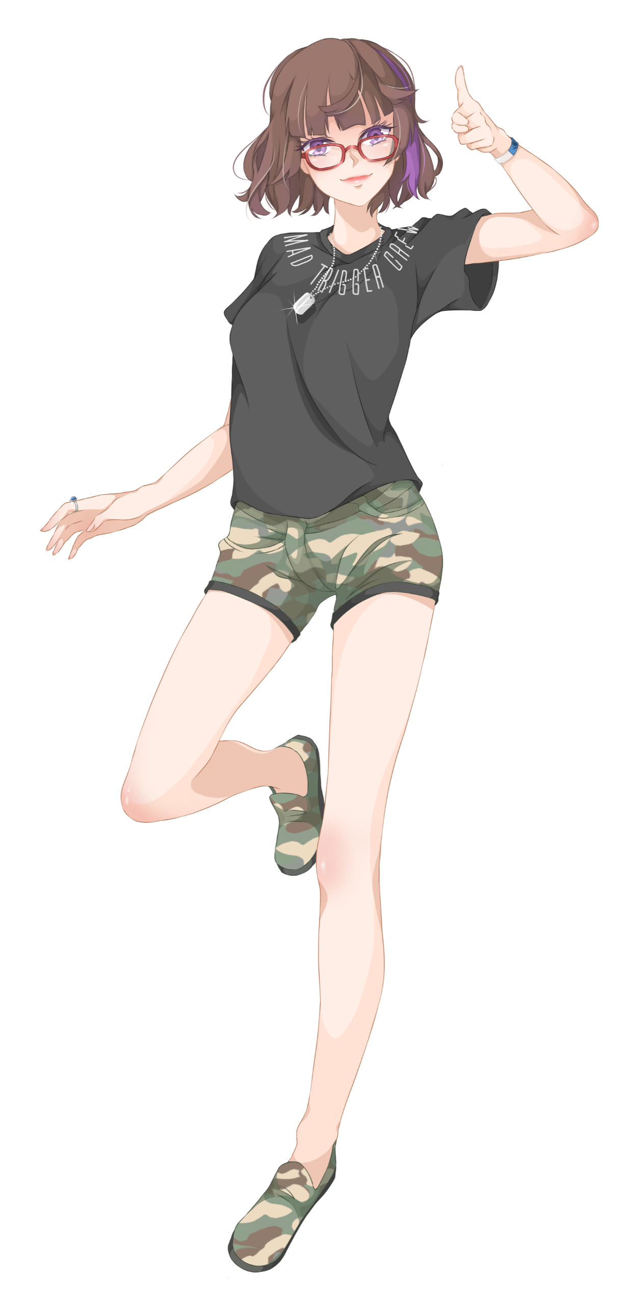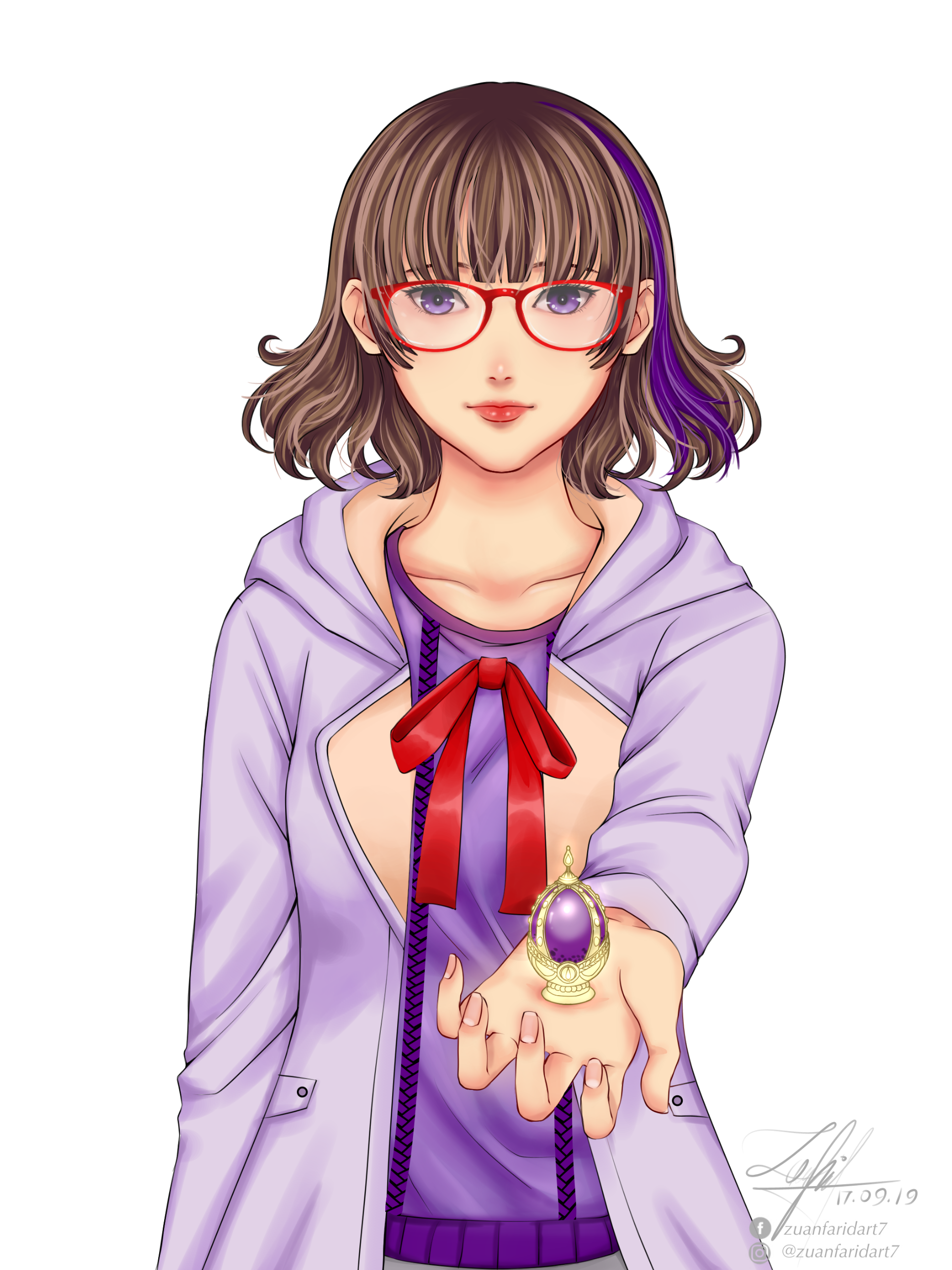 Ran have 2 initial design made from Charat, and a other design depends on the occasion. She also have some cross-over outfits and forms too.Her design is inspired by Kuriyama Mirai (Kyoukai no Kanata). I really like Mirai and I used the same red glasses and hairstyle for around 7 years, that's how I came up with the design.I prefer to keep Ran's design as is.
