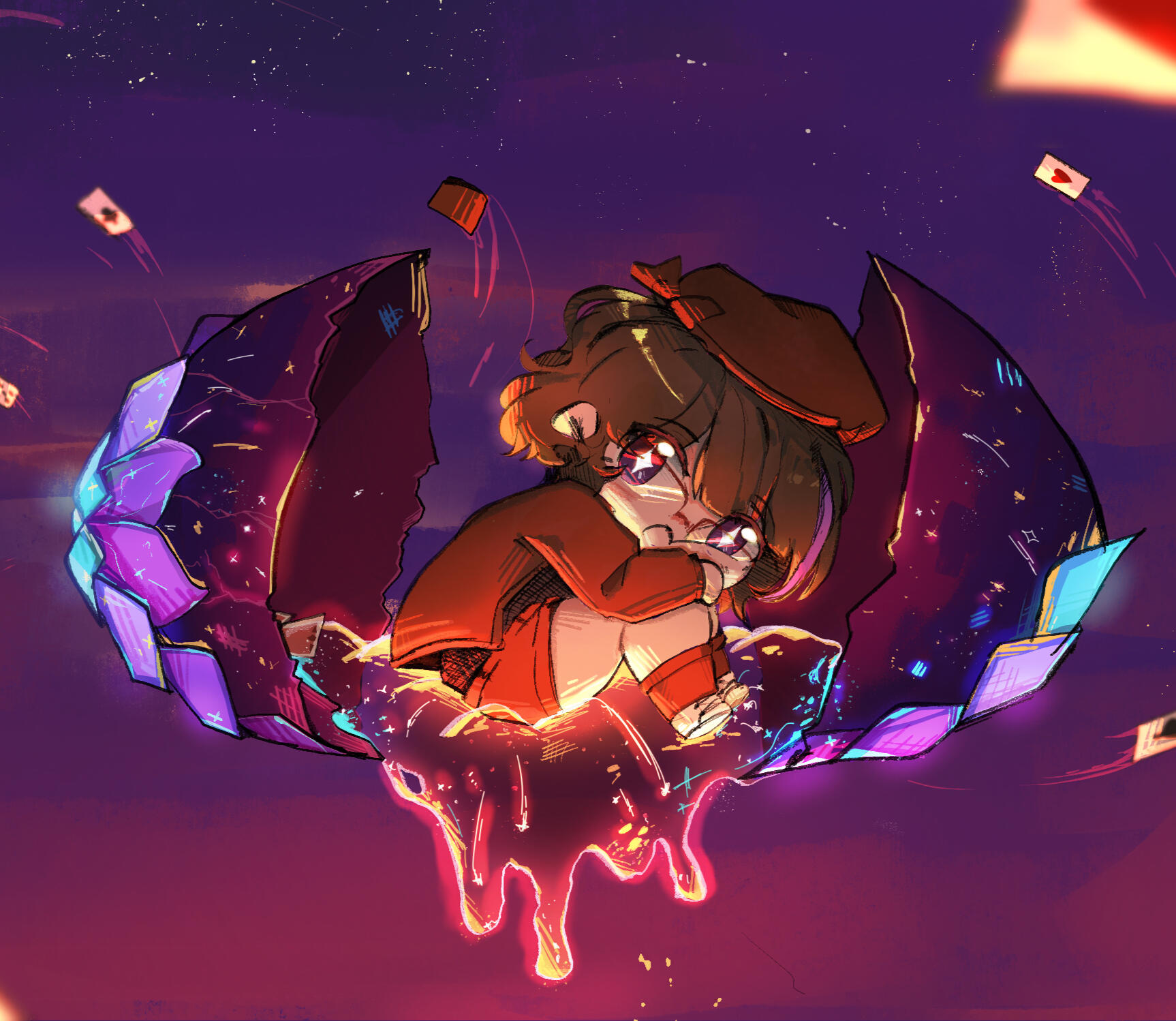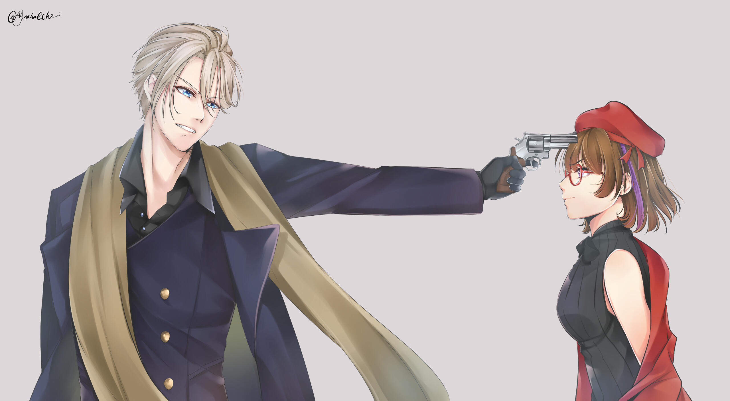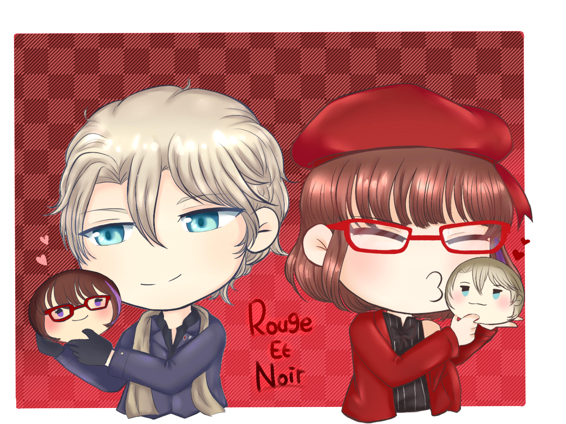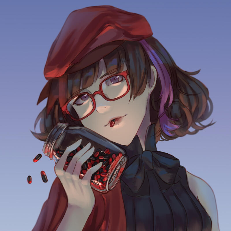 Hikazu Ran was made as a Rouge et Noir's OC. Rouge et Noir is a Rated🔞 Situation CD series, so Ran is a self-insert persona for the series' main character. Rouge et Noir's story is about dru!gs dealer, and the MC is a police (Drug Enforcement Officer/麻薬取締官). The route she's in is Arlen Clive's route (3rd character of the series). Arlen was one of the drug dealers and the MC was sent to him as a honey trap.Linked to the theme of the series, she often appears with guns, handcuffs, poker cards, c4s!n0 chips, and the Rouge et Noir itself. Rouge et Noir is the name of the drug, it's in form of a red and black pills.Currently, she's used for Matorizu's persona for various occasions, so she might be out of character in some AU/Cross-over.Here's some of trivial info about Ran :
